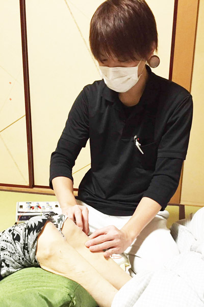 ご自宅内では特に場所の指定はございませんので、寝室のベッドの上や玄関先の椅子の上などのスペースがございましたら施術可能です。